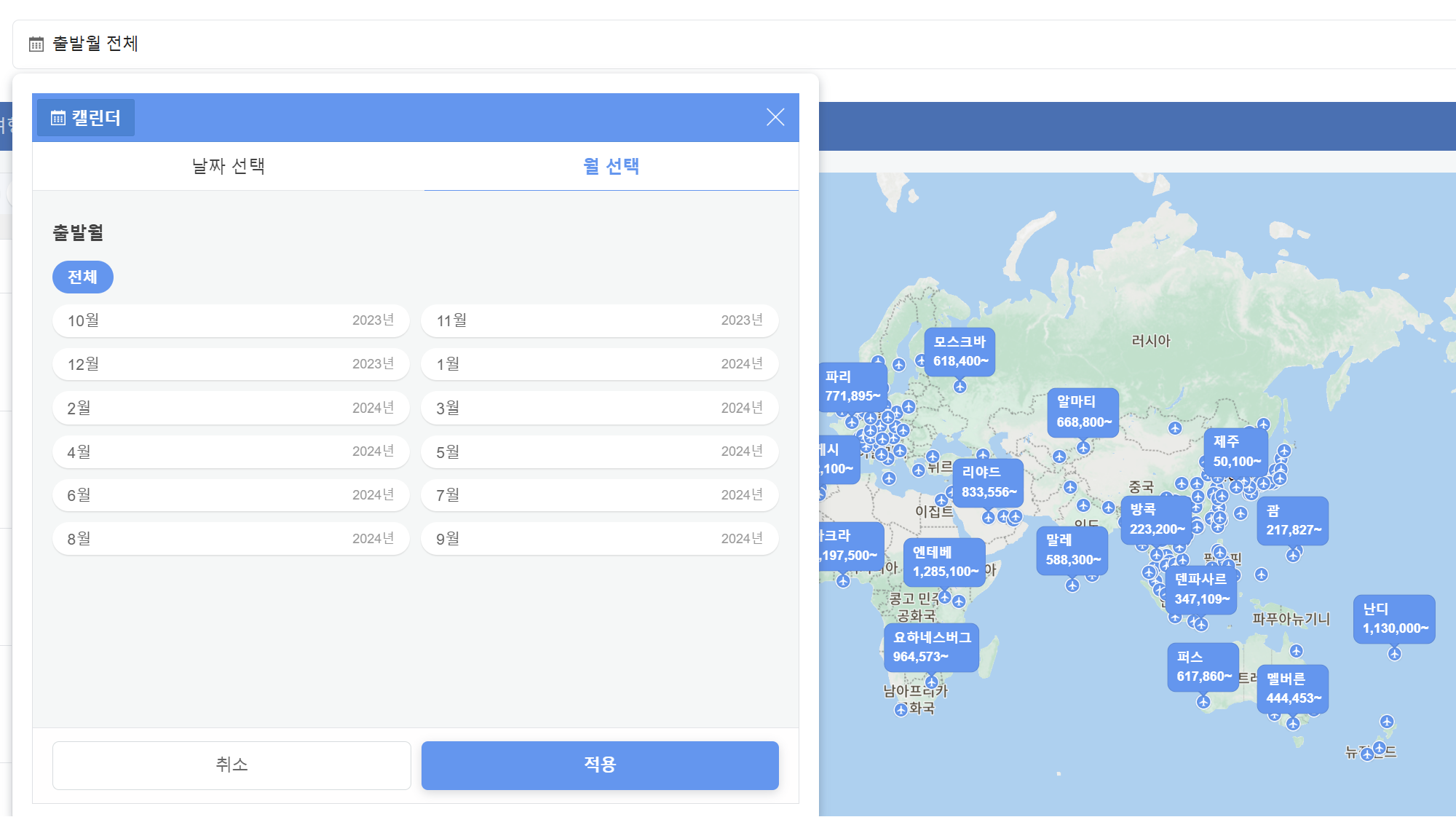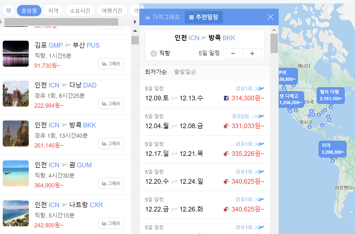 3. 찾고 있는 노선을 클릭하고 가장 저렴한 티켓 가격과 날짜를 확인합니다.